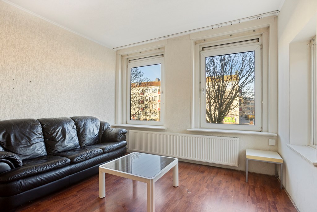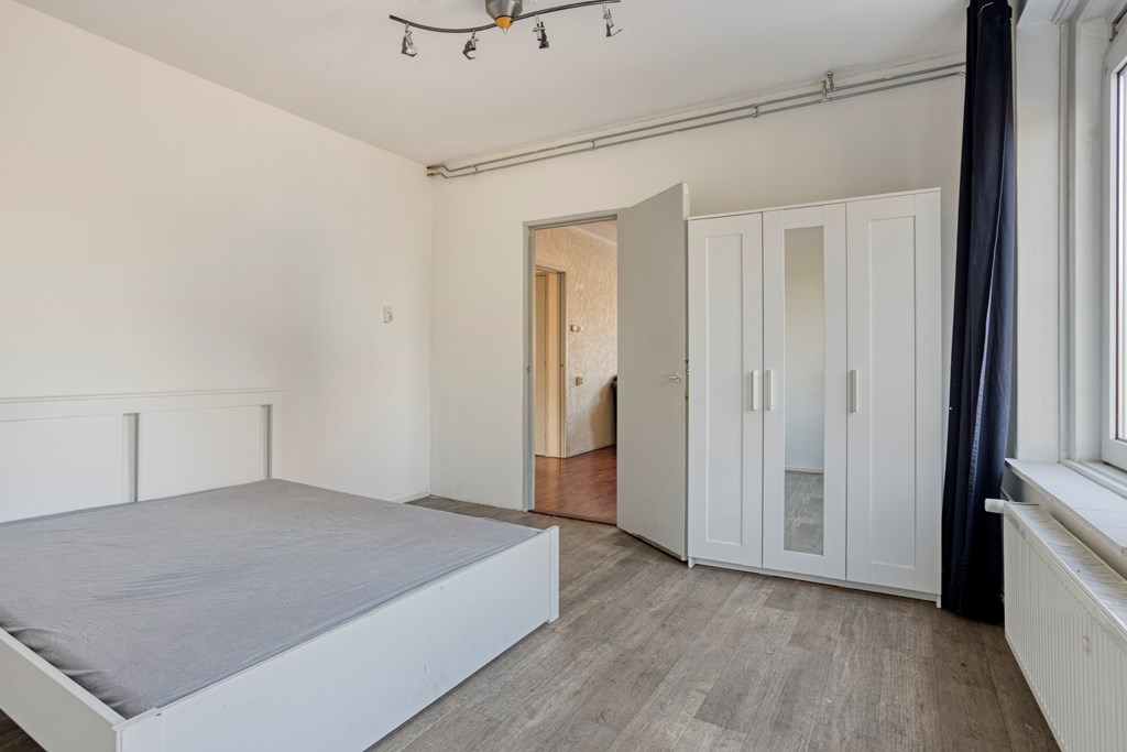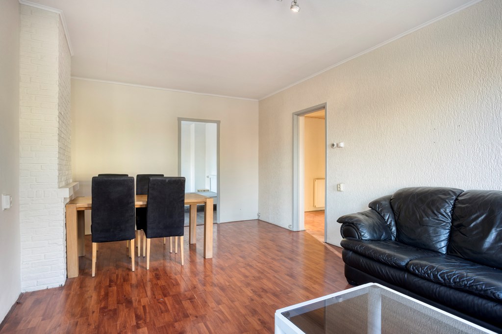 Entree, ruime hal met toegang tot alle vertrekken. De hal beschikt over twee vaste kasten, waarin de meterkast zich bevind. Een op de hoek gelegen woonkamer met royale raampartijen aan twee zijden, waardoor er een overvloed aan natuurlijk licht binnenvalt. De keuken is voorzien van diverse onder- en bovenkasten en inbouwapparatuur en de opstelplaats van de cv-combiketel. De eerste slaapkamer van ca. 15 m² en tweede slaapkamer van ca. 7 m² zijn gelegen aan de achterzijde van de woning, waarbij de kleinere toegang geeft tot het brede balkon. De derde slaapkamer van ca. 9 m² is gelegen aan de voorzijde van de woning. Vanuit de hal heeft u toegang tot de badkamer. Die is voorzien van een douche en wastafel met spiegel. Er is een separate toiletruimte. Berging De woning beschikt over een ruime berging van ca. 10 m² in de onderbouw.