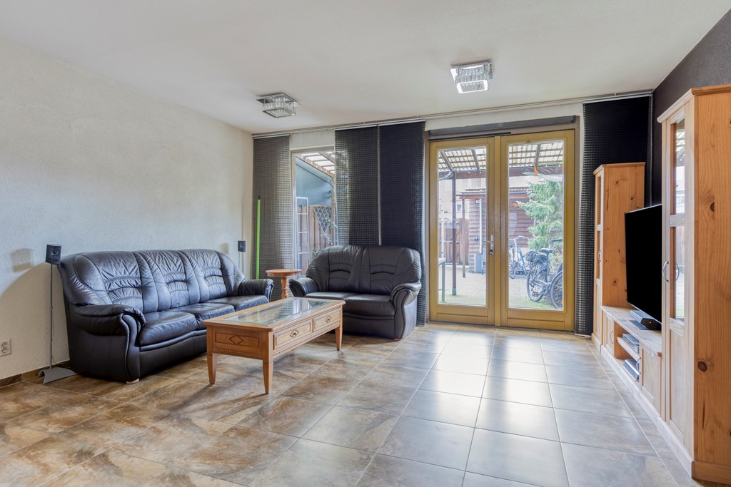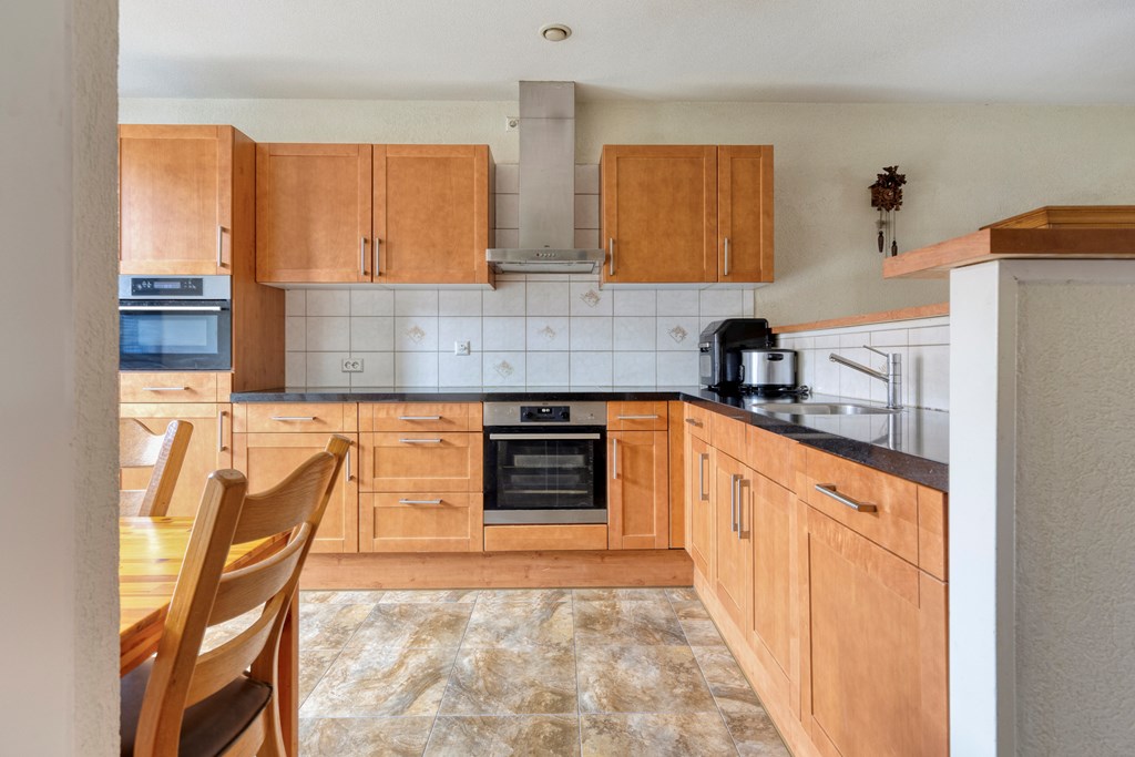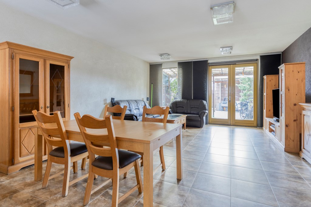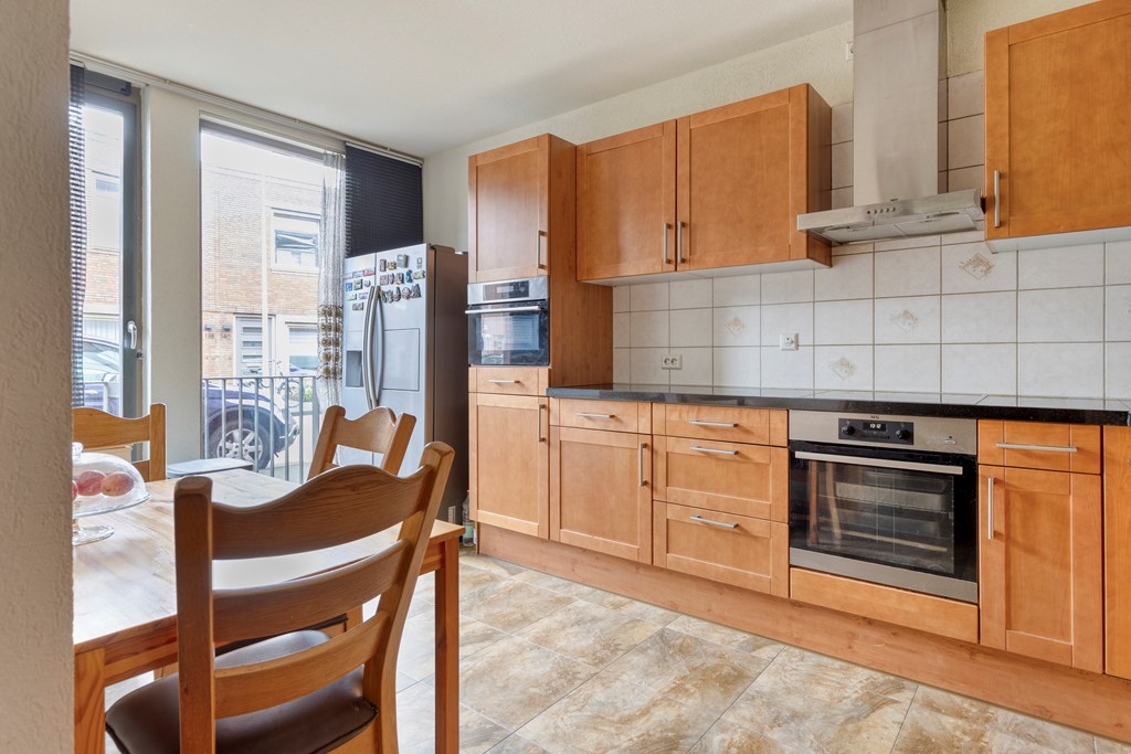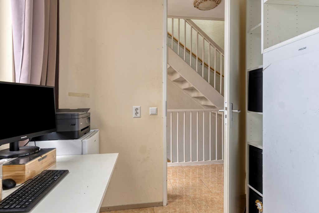 Begane grond: Je komt binnen in de hal die toegang geeft tot de ruime woonkamer met open keuken. De woonkamer biedt mogelijkheid om een leefgedeelte te creëren en een plek voor de eetkamer. Tevens bereikt u via de dubbele openslaande deuren de zonnige achtertuin op het Zuid-Westen, deels met overkapping. In de achtertuin staat een vrijstaande schuur en via de achterom bereikt u de eigen parkeerplaats op afgesloten terrein. De half open keuken is opgesteld in L-vorm met veel kastruimte en beschikt over een inductiekookplaat met afzuigkap, een magnetron, oven en vaatwasser.