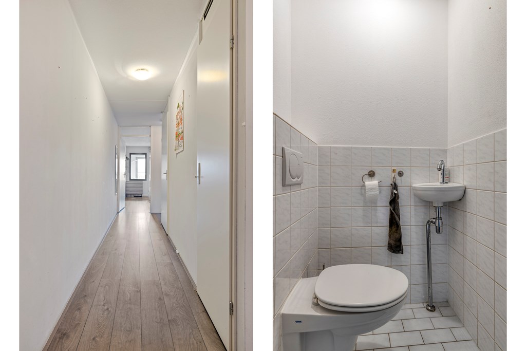 Lift naar de 7e verdieping. Entree in hal die toegang geeft tot alle vertrekken. Woonkamer met veel ramen op Zuid-Oost en Zuid-West met prachtig uitzicht over de Laakhaven. Open keuken met kookeiland en inbouwapparatuur. Prettige loggia met uitzicht richting Zuid-Oost. Inpandige badkamer met inloopdouche, wastafelmeubel en wasmachine. Apart toilet. 2 slaapkamers. Inpandige berging op de 2e verdieping. Eigen parkeerplaats op afgesloten terrein.
