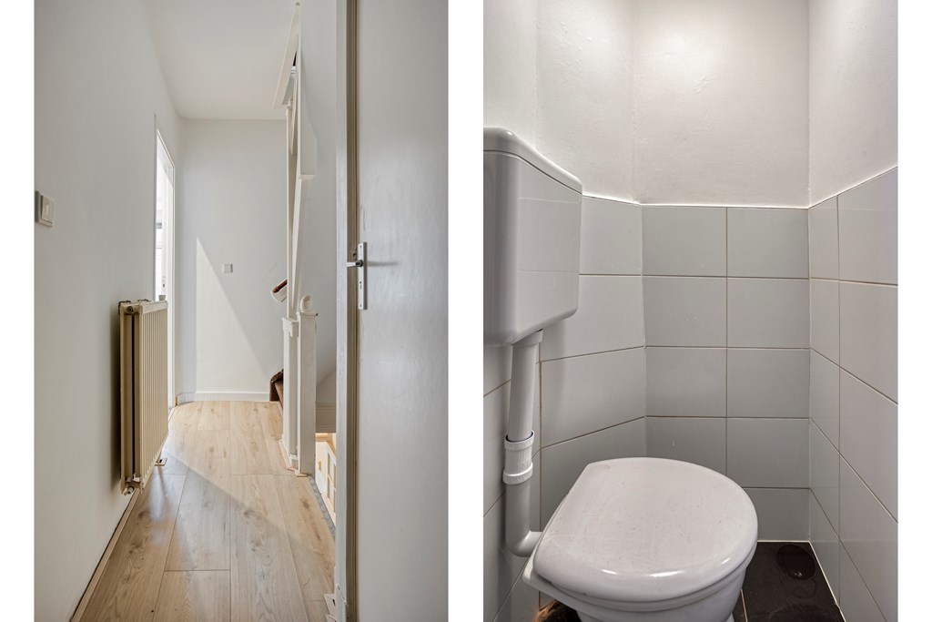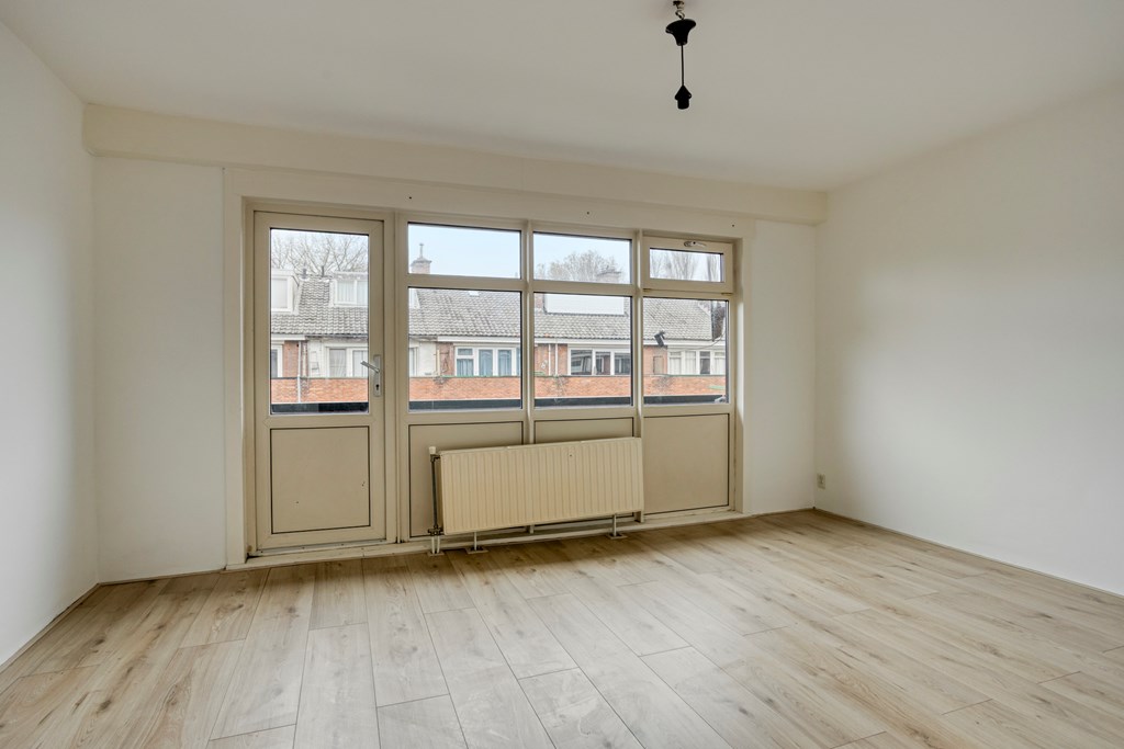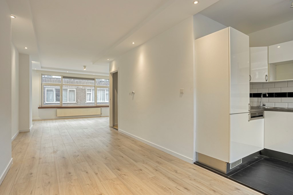Bij binnenkomst word je direct verrast door de royale, lichte woonkamer van meer dan 10 meter lang, die aan de achterzijde wordt geflankeerd door de open keuken en een woningbreed balkon op het oosten, te bereiken door een grote schuifdeur. De gehele verdieping is strak afgewerkt met een moderne, lichte laminaatvloer. Er bevinden zich een apart toilet en de meterkast in de gang.